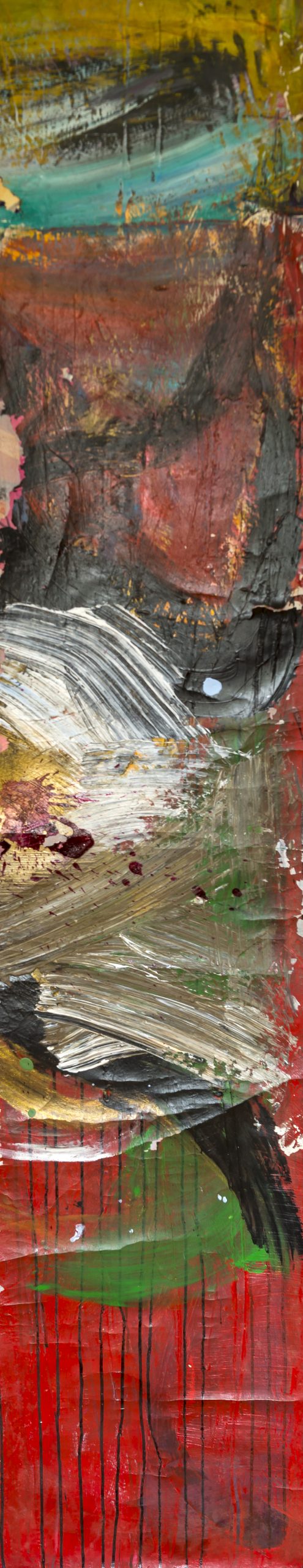 L’artiste traduit ici la rupture d’une pudeur qui empêche la liberté de vivre. C’est son affranchissement envers l’héritage familial et sociétal. On entend presque le cri de son émancipation, le bruit de sa libération, la colère après la rage portée contre soi et les autres. “Laissez-moi dire ce que j’ai vécu”, semble hurler la toile.